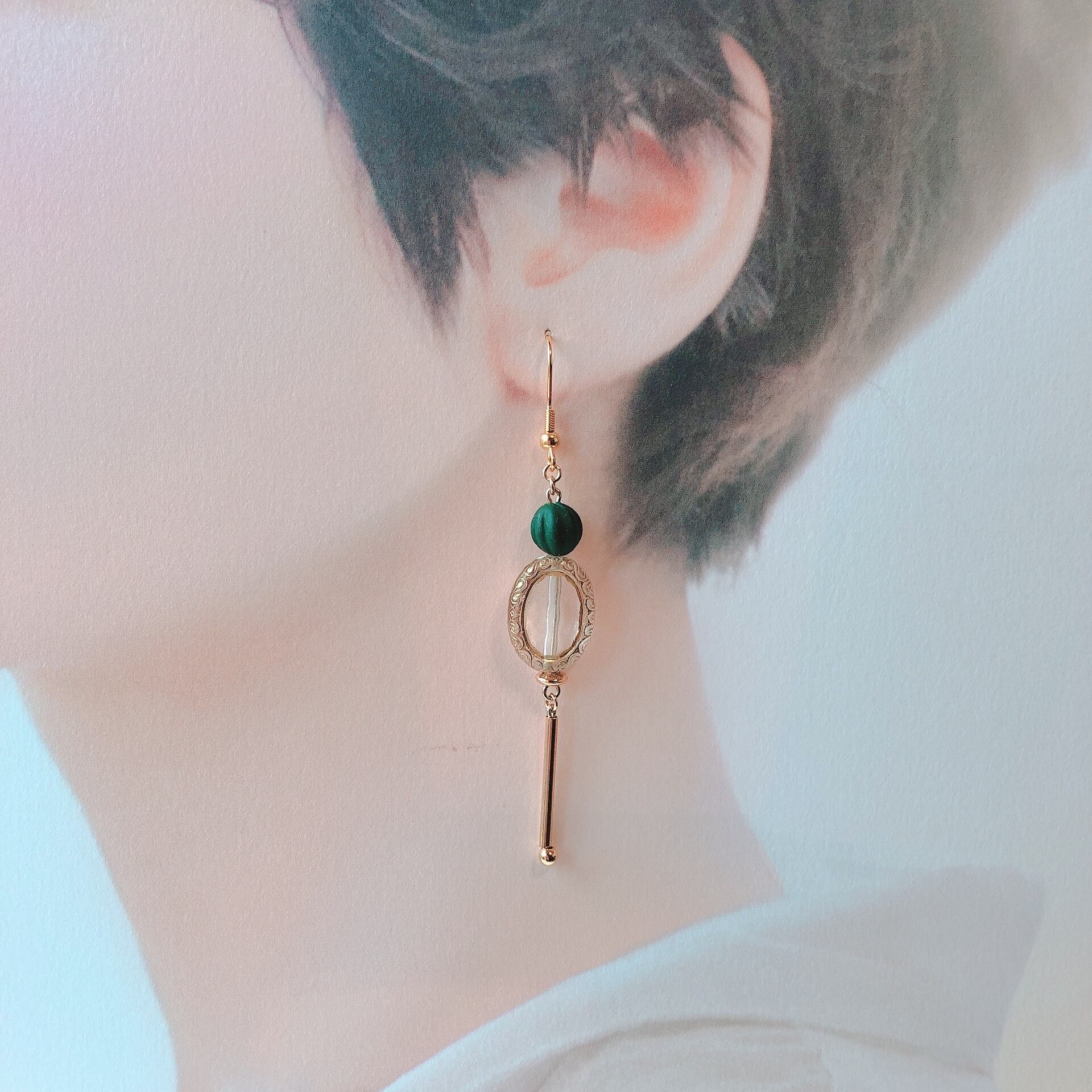 モスグリーン アンティークアシメトリー【サージカル】ピアス